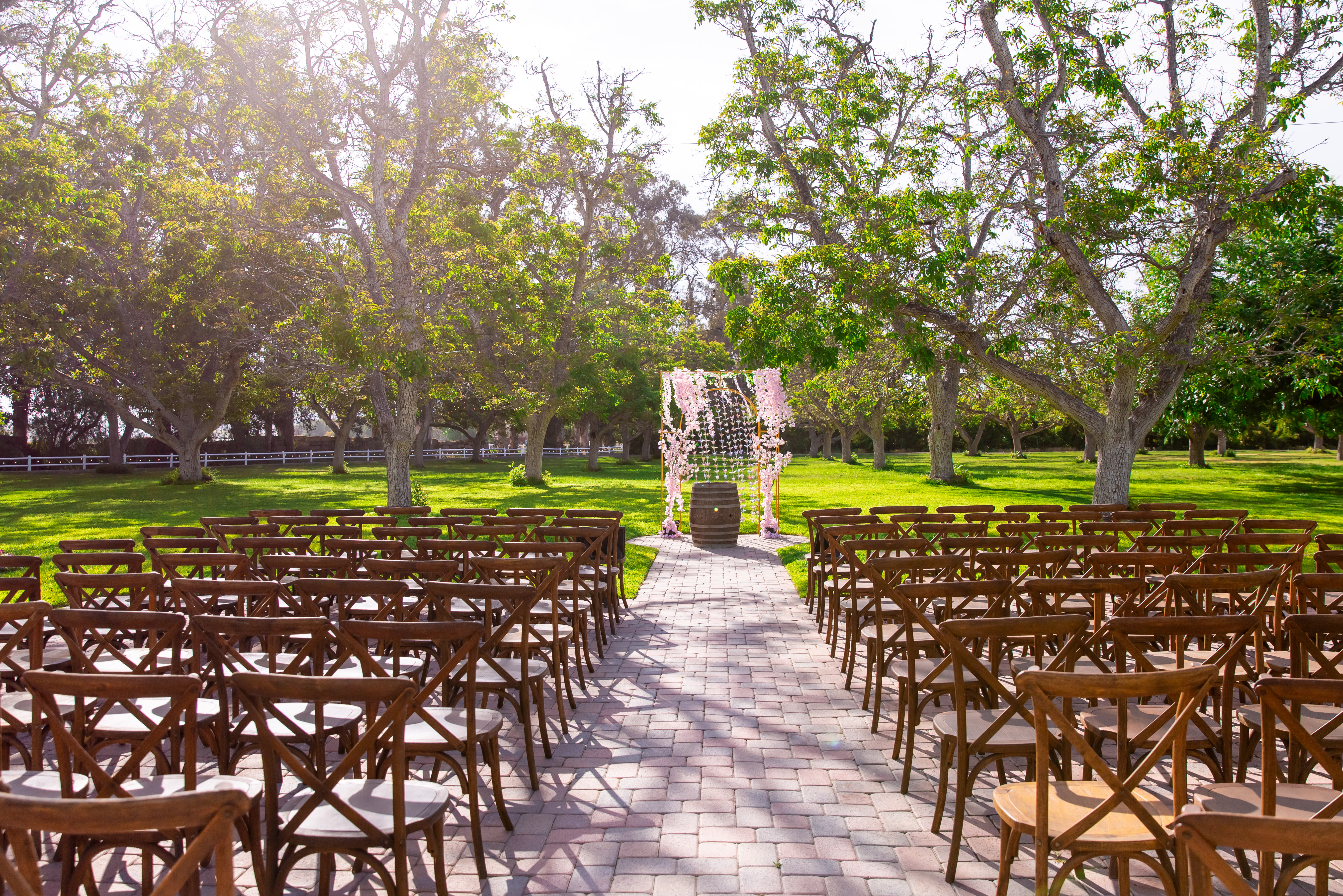 Walnut Grove offers a unique blend of seclusion and convenience—tucked away on our family’s 120-acre working ranch, yet just minutes from Los Angeles. Spanning 5 acres of lush greenery, mature walnut trees, and open skies, the venue feels like a hidden world where nature and celebration meet. As a family-owned and operated space, every event here is personal. We take pride in sharing the rich history of our land and welcoming each couple as part of our extended family.